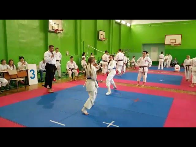 kumite Финал Шобу-иппон кумите. Региональные соревнования (г. Иркутск) по традиционному карате, Ксюша в финале, к сожалению, проиграла подруге по команде 1:2. Наша слева ))) Девочки категория 12-13 лет. 5кю+