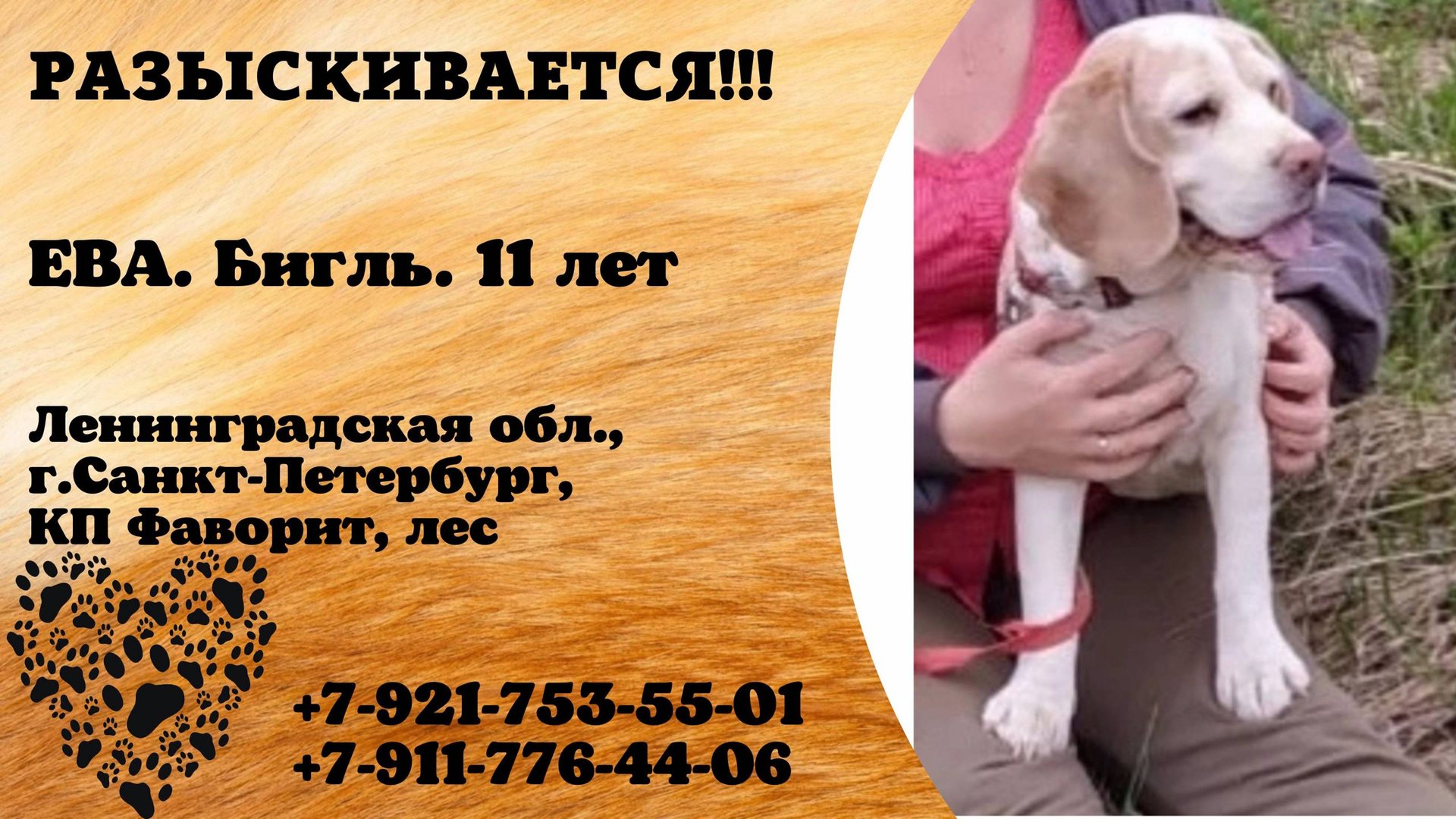 Пропала собака! ЕВА. Бигль. 11 лет. Ленинградская область, г.Санкт-Петербург.