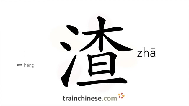 渣 (zhā) slag; dregs, residue; dross; bagasse; pornace; lees; offscum