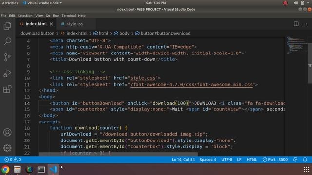 Download-button with counter using HTML CSS and JavaScript - Source code