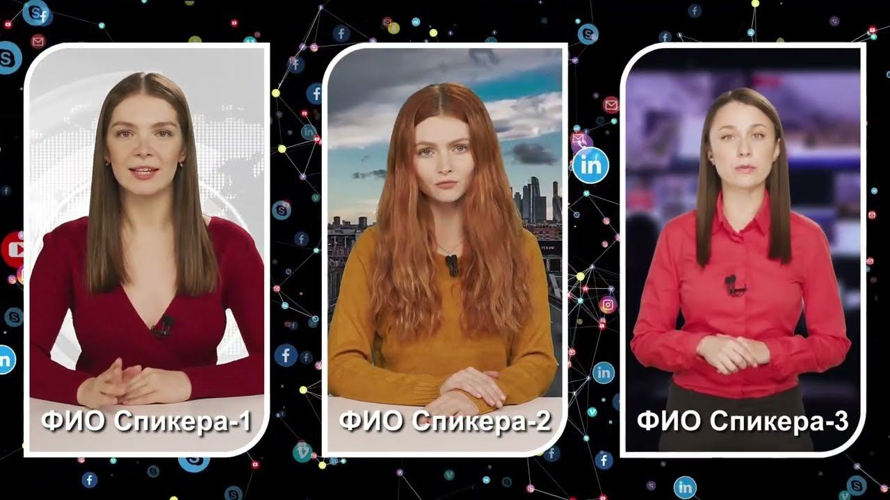Пример оформления прямого эфира, 4/3/2 спикера, виртуальные студии