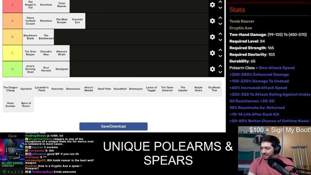Diablo 2 TIER LIST - Unique Polearms and Spears - NOW WITH STATS SHOWN!