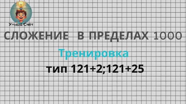 Тренировочное видео.Сложение в пределах 1000. Тип примеров 121+2,121+25