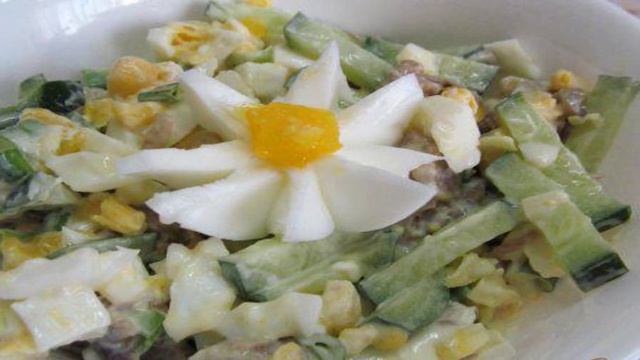Салат из говядины с кукурузой и яйцом