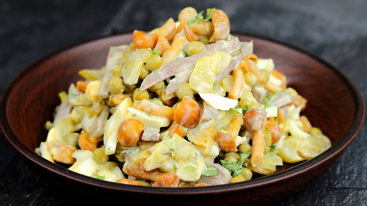 Что Приготовить на Праздничный Стол, когда Оливье Надоел! Оригинальный и Вкусный Салат за 5 Минут! Рецепт: Вареные яйца - 4 шт Соленые огурцы - 3 шт Опята маринованные - 5 ст.л. Горошек консервированный - 250 г Вареный говяжий язык - 250 г Майонез - 1-2 ст.л. Черный перец. Петрушка. Приятного аппетита! салат на новый год, салат, новогодний стол, новый салат, что приготовить, на праздничный стол, оливье надоело, оливье, оригинальный салат, вкусный салат,