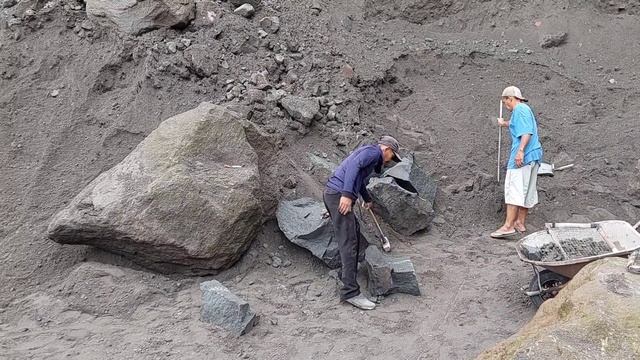Строительство, шахтёры раскалывают камни ,это приоритетная задача в карьере