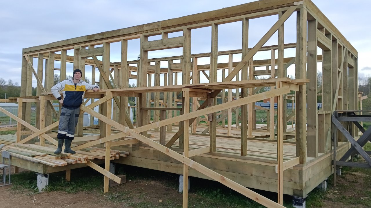 Сажаем деревья и колотим строительные леса для каркасного дома.