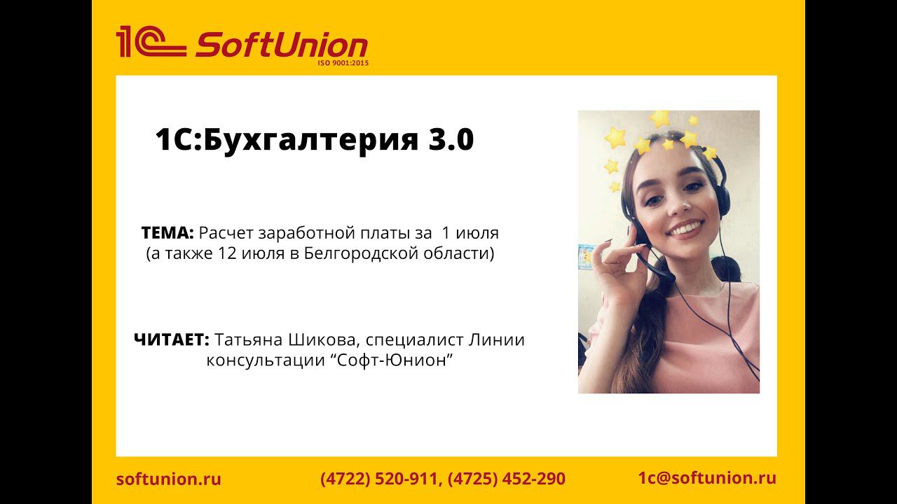 Расчет зарплаты и учет времени за 1 июля + 12 июля в Белгородской области в 1С:Бухгалтерии 3.0.