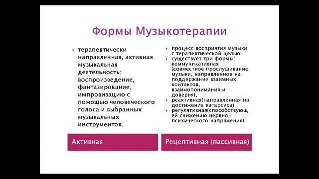 В этом видео: - Ритм как основа жизни человека на Земле; - Эмоциональное состояние в зеркале ритмического "танца": сердечного ритма и дыхания; - Терапевтические возможности слушания и воспроизведения музыки; - Активная и пассивная музыкотерапия: способы работы, возможности и ограничения; - Терапевтический эффект и терапия при слушании и создании музыки. Эксперт: Буренкова Алена Валентиновна - кандидат психологических наук - доцент кафедры танцевально-двигательной психотерапии Института Практической Психологии (ИППиП, Москва) - сертифицированный специалист в области музыкотерапии, арт-терапии, куклотерапии
