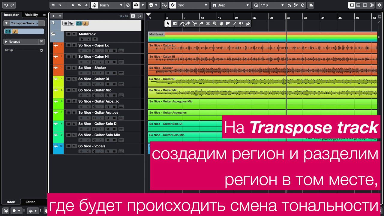 Транспонирование дорожек в Cubase