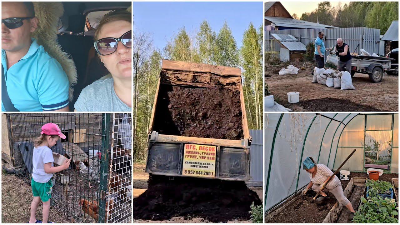 Привезли бесплатный навоз! Заказали чернозем. Пересадка помидор в теплицу. Деревенская жизнь.