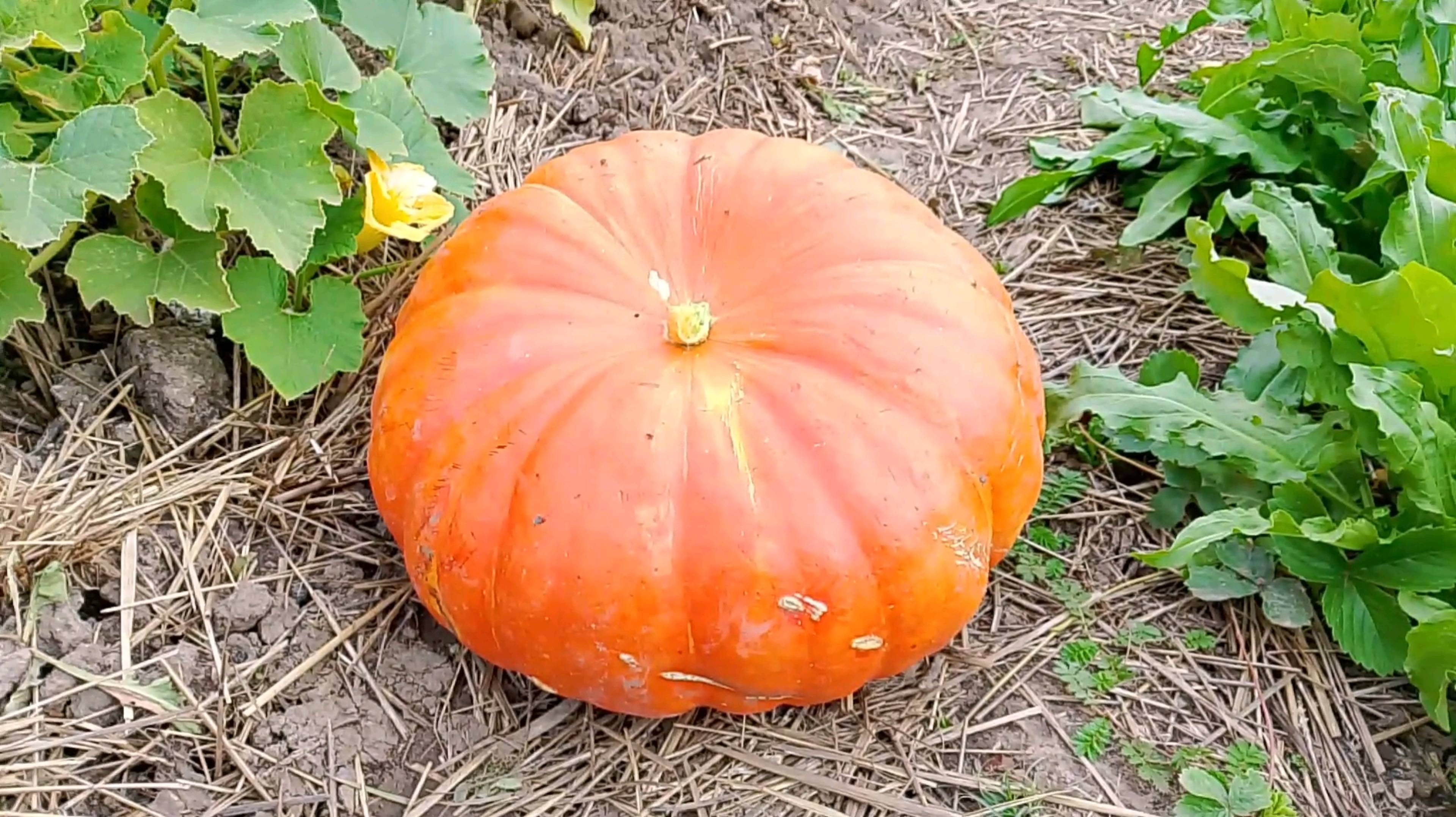 Показываю, какие красивые у нас тыквы выросли.