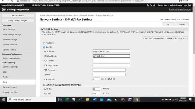 Setting up smtp on canon Copier