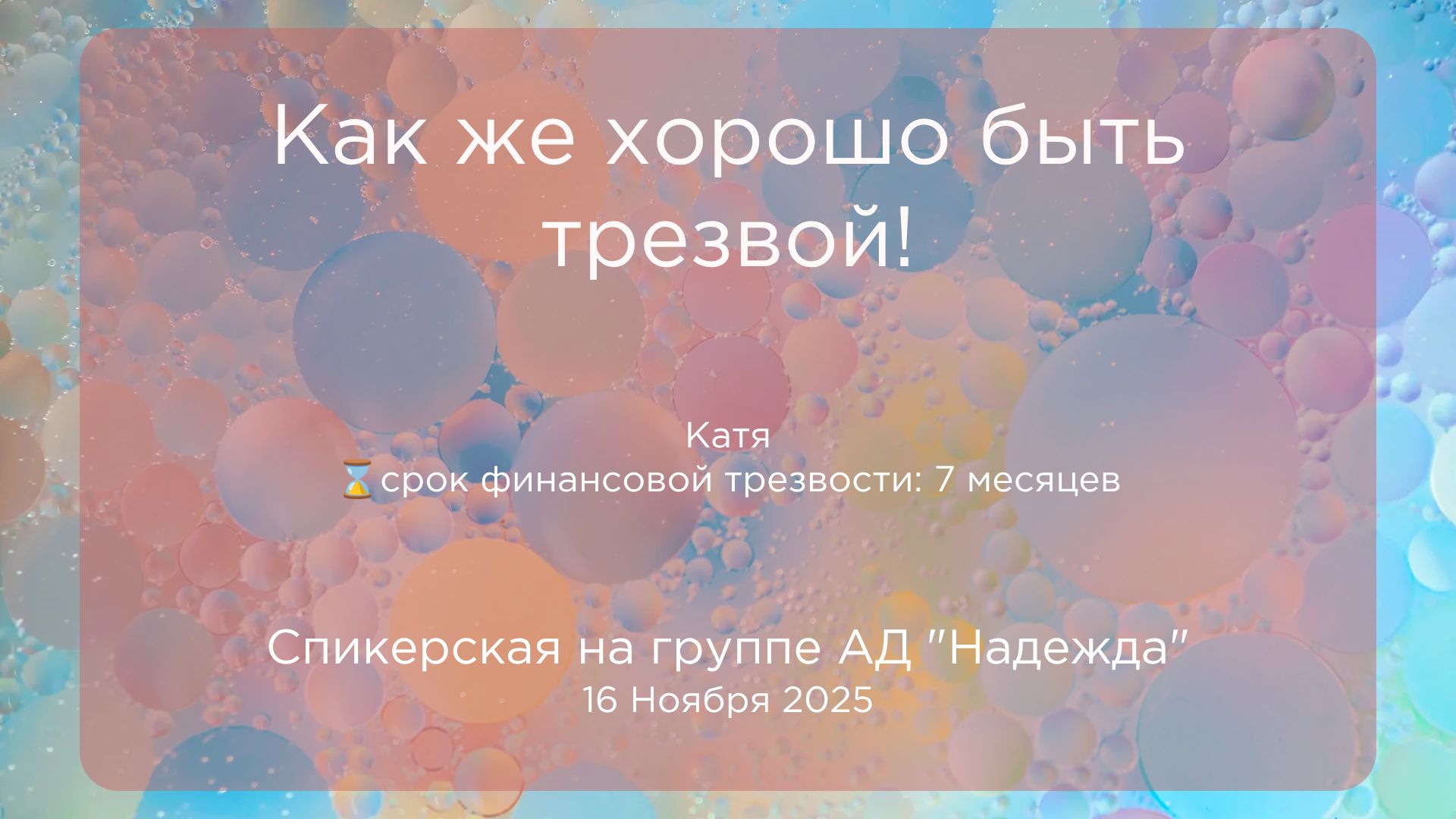 Анонимные Должники — это сообщество мужчин и женщин, которые делятся друг с другом своим опытом, силой и надеждой, чтобы разрешить свою общую проблему и помочь другим выздоравливать от компульсивного занимания денег. Единственным условием членства является желание перестать занимать деньги, которые потом не можешь отдать. В Анонимных Должниках нет членских взносов, мы существуем на наши добровольные пожертвования. Анонимные Должники не связаны с какой-либо сектой, вероисповеданием, политической организацией или учреждением, не вступает в полемику по каким-бы то ни было вопросам, не поддерживает и не выступает против чьих бы то ни было интересов. Наша основная цель — перестать занимать деньги и помочь другим компульсивным должникам остановиться. Будучи членами Анонимных Должников, мы находим в себе черты и признаки потери контроля в области финансов. Мы учимся, день за днем применять Инструменты, предлагаемые Программой Анонимные Должники. ________________________________________________________________________ Внимание! В данной спикерской выражено мнение отдельного члена, а не всего сообщества Анонимных Должников ______________________________________________________________________ Добро пожаловать в анонимные должники! ☀️ Telegram: t.me/DABDArus_bot ☀️Набор новичка АД одним файлом https://goo.su/0OCN ☀️Спикерские Анонимных Должников https://yadi.sk/d/qPGS-YkVUctWZg ☀️ youtube канал АД «Жизнь без долгов» (записи спикерских, семинаров) / @adebtors ☀️ Сайты и литература АД, БДА: https://adebtors.ru/ -официальный сайт русскоговорящего сообщества А.Д https://rudebtors.wordpress.com/ -информационный ресурс АД https://debtorsanonymous.org/ -англоязычный сайт D.A