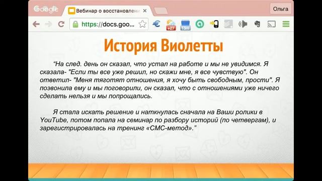 Как вернуть любимого и построить семью. (запись вэбинара от 18.08.2016) На вэбинаре обсудили: - Как побудить партнера к развитию отношений. - Как вернуть чувства и интерес мужчины. - Как справиться со страхом серьезных отношений Ссылка на тренинг СМС-метод 3.0: http://goo.gl/2cKlxM Ссылка на консультацию: http://goo.gl/plxjva Отправить свою историю: http://goo.gl/s8D8HI Беслатная книга """"Как вернуть любимого человека, используя СМС сообщения"""" https://goo.gl/9Qaf2L Все видео доступны на моем канале в youtube https://www.youtube.com/user/chikankova Мои страницы в соцсетях: http://vk.com/o.d.chikankova https://www.facebook.com/o.chikankova http://ok.ru/chikankova