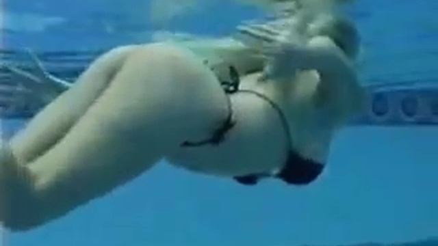 Купальщица плывет со дна на поверхность и выбирается из бассейна.