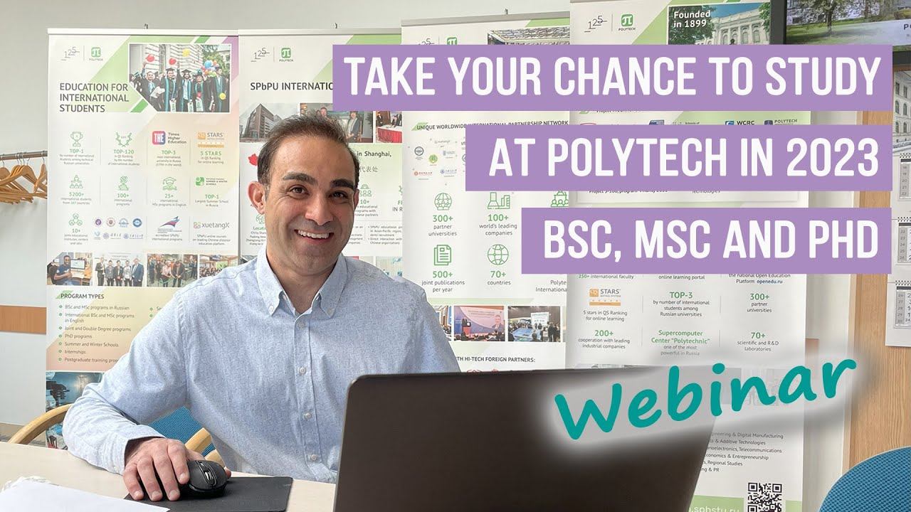 ⚡ First-hand opinion from our students from Iran, Syria, Pakistan and Colombia: SAFI Seyed Vahid (Iran, Institute of Industrial Management, Economics and Trade, the winner of the scholarship project “Open Doors” International Olympiad, Master Degree program “Automation of Technological Machines and Equipment and Intelligent Management Systems”) https://opendoors.spbstu.ru/en ASSALAMA Lara (Syria, University Foundation program student for further PhD studies at Polytech) https://english.spbstu.ru/education/programs/university-foundation-program/ ZAIB Shah (Pakistan, Institute of Energy, International Master Degree Program in English "Electrical Engineering") https://english.spbstu.ru/education/programs/programs-in-english/master-s-degree/electrical-power-engineering/ HERNANDEZ Castagno Maya (Colombia, Institute of Humanities, Bachelor Degree program “Translation and Modern Technologies in Linguistics”) https://english.spbstu.ru/education/programs/degree-programs/bachelor-degree/ Meet Polytech representatives and have the chance to: ⚡ Discover more than 150 bachelor's and master's degree programs in Russian and English ⚡ Check out Pre-bachelor or Pre-master foundation program to improve your Russian language skills ⚡ Find out about admission requirements and application deadlines 2023/2024 ⚡ Learn about living costs and tuition fees for 2023/2024 academic year! Get more information on our web-site ➡️ https://english.spbstu.ru/education/ How to apply ➡️ https://english.spbstu.ru/education/admissions/ Russian Government scholarship project “Open Doors” International Olympiad (for Master and PhD studies) ➡️ https://opendoors.spbstu.ru/en University Foundation program ➡️ https://english.spbstu.ru/education/programs/university-foundation-program/ Bachelor's Degree programs ➡️ https://english.spbstu.ru/education/programs/degree-programs/bachelor-degree/ Master's Degree programs ➡️ https://english.spbstu.ru/education/programs/degree-programs/master-degree/ PhD programs ➡️ https://english.spbstu.ru/education/programs/degree-programs/postgraduate/ International Degree Programs in English ➡️ https://english.spbstu.ru/education/programs/programs-in-english/