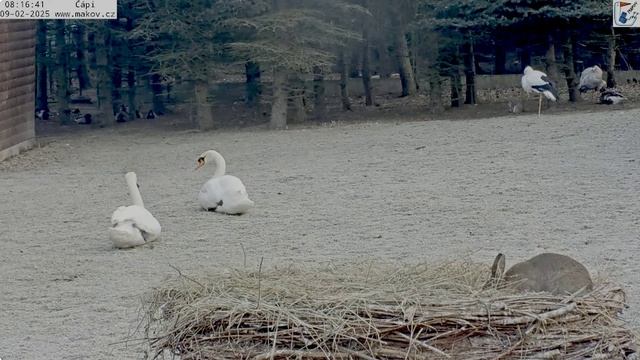 Лебеди идут на завтрак- заяц продолжает сено воровать у аистов
