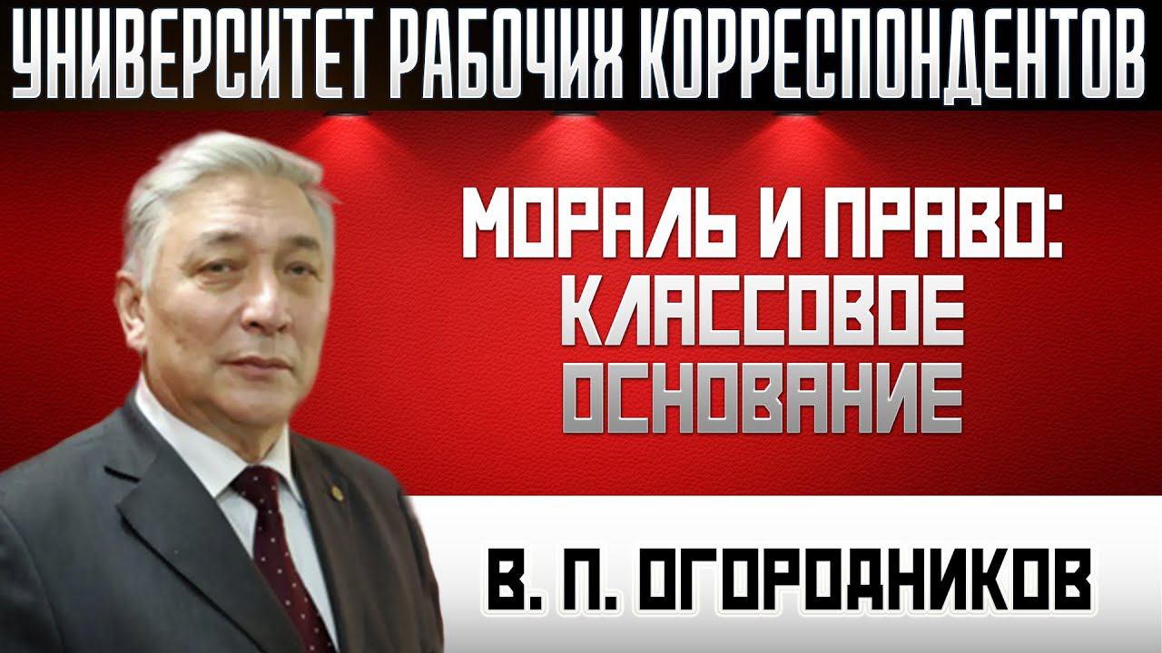 Мораль и право: классовое основание. В.П.Огородников. 19.03.2020.