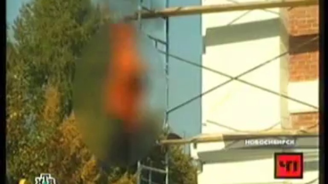 Одинокий пенсионер повесился на здании городской администрации Новосибирска и поджёг себя из-за неправильного перерасчёта пенсии. Журналисты НТВ, снимавшие этот сюжет, похоже, восприняли происшествие как забавный случай и повод для "прикольного" репортажа...