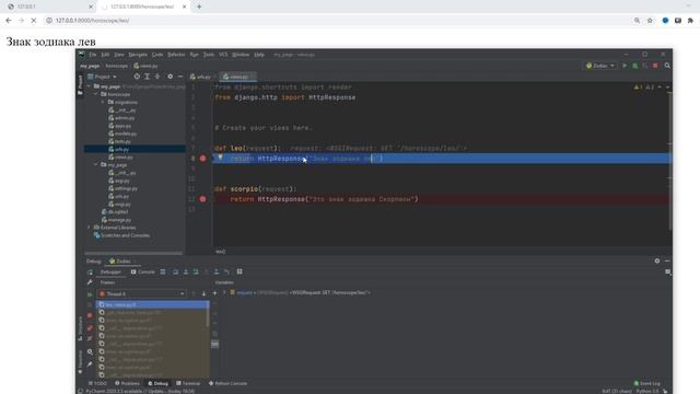 Курс на степике по Django https://stepik.org/z/114288 Степик с меня берет комиссию поэтому 1) Лучший способ приобрести курс - личный банковский перевод в РФ или покупку тарифа на boosty. Я добавлю вас вручную на курс по вашему ид. https://t.me/artem_egoroff 2) оплачивать напрямую на степике по реферальной ссылке https://stepik.org/z/114288 так с меня возьмут меньше комиссии Доступ к закрытым видео на один месяц вы можете получить, став спонсором канала https://www.youtube.com/channel/UCMcC_43zGHttf9bY-xJOTwA/join https://boosty.to/egoroff_channel https://www.patreon.com/artem_egorov Телеграмм канал моего проекта https://t.me/python_egoroff Группа в вк https://vk.com/python.study Курс по основам Python https://stepik.org/course/63085/ Курс по ООП на Python https://stepik.org/z/114354 Коды ответа HTTP https://developer.mozilla.org/ru/docs/Web/HTTP/Status Знаки зодиака https://www.homeenglish.ru/OtherGoroscop.htm URL обозначает Uniform Resource Locator. URL это лишь адрес, который выдан уникальному ресурсу в интернете. Такими ресурсами могут быть HTML-страница, CSS-файл, изображение и т.д. View, или представление, — это то место, где мы разместим «логику» работы нашего приложения. Представления похожи на методы в Python и лишь немногим сложнее того, с чем мы уже сталкивались в главе Введение в Python.