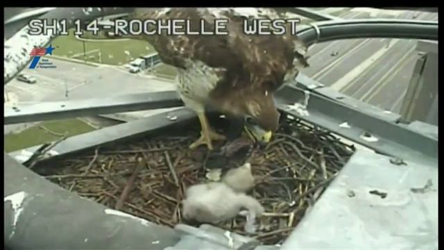 в Техасе семейство краснохвостых ястребов захватило следящую за дорожным движением камеру..mp4