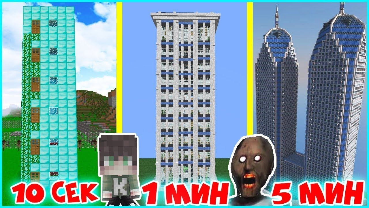 НУБ И БАБКА ГРЕННИ ПРО СТРОЯТ НЕБОСКРЕБ ЗА 10 СЕКУНД 1 МИНУТА 5 МИНУТ В МАЙНКРАФТ