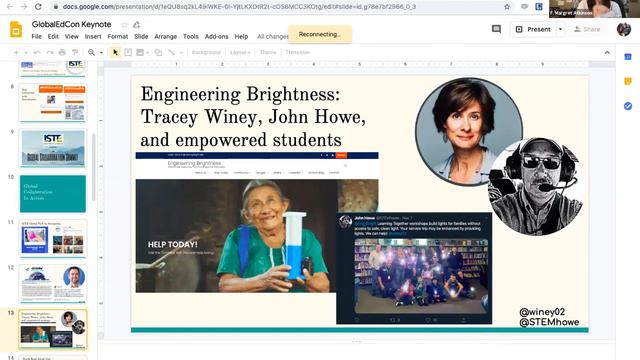 View this keynote presentation from the 2019 Global Education Conference. For more information, visit globaleducationconference.org. The Power of Global Collaboration and Connection 🌍 The power of global collaboration lies in the ability to connect and make meaningful connections for further collaboration. ⏰ Distance doesn't hinder connection: Despite being hours away from each other, Amanda and Margaret have maintained daily contact, highlighting the strength of their friendship and the ability to stay connected regardless of physical distance. 😍 The power of personal connections and relationships in the education community is invaluable in overcoming fear and taking risks. 💡 Amanda Lanicek highlights the value of professional learning networks (PLNs) in education, emphasizing the ability to connect with others, ask questions, and receive diverse answers and resources. 🌍 Teachers from all over the world are engaging in amazing global collaboration projects, showcasing that anyone can make a significant impact in education. 💫 The team aims to highlight global events and foster collaborations around the UN sustainable development goals to make the world a better place by 2030. 💡 "Nothing can be done until you make that connection, until you or you see that other human and so just don't ever undersell the idea. The affirmation is important and seeing what other people can do is powerful." 🌍 The speakers tapped into Instagram to reach educators who aren't on Twitter and have asked educators to take over, resulting in amazing collaborations and connections in classrooms worldwide. Impactful Education Initiatives and Projects 🌍 Tracy Whiney's project, highlighted by Amanda Lanicek and F. Margret Atkinson, showcases the power of global collaboration in education. 🌟 Tracy students' engineering brightness program, funded by real world Scholars, is mind-blowing and has earned them prestigious awards for their visionary education initiatives. 💡 Tracy collaborates with schools to design solar lights and fight light poverty in different countries, creating a real and impactful difference. 🌍 World Read Aloud Day celebrates the universal nature of literature and the joy of sharing stories across cultures. 🌍 Dr. Jen Williams is actively empowering teachers to teach and implement the sustainable development goals in the classroom, creating a better future for our students.