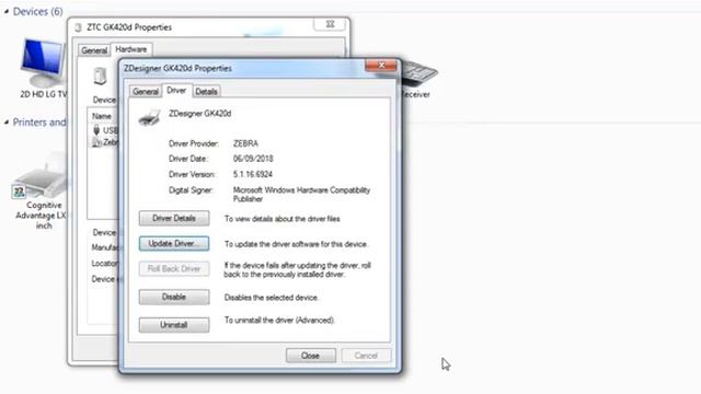 If Zebra printer installs as Unspecified Device fix in WIN 7