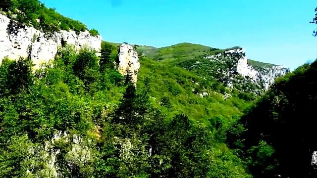 Крым.Большой каньон,на дне течет река с Ванной Молодости (озеро Кара-голь).Крупнейший каньон Украины,образован 1,5 — 2 миллиона лет назад Является северо-восточной границей Ай-Петринского массива. , длина 3,5 км, высота 500—600 м.Каньон орошают многочисленные горные ручьи . Основные породы деревьев — граб, бук, ясень, дуб, полевой клён, рябина, липа