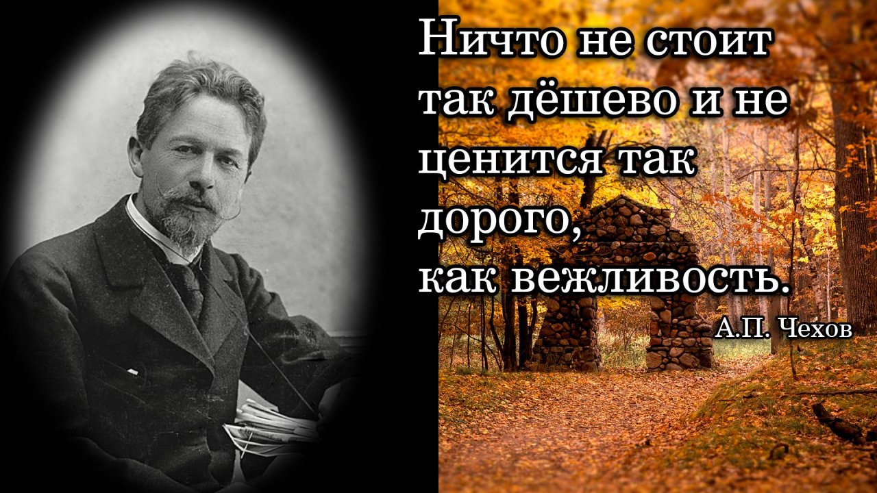 Антон Павлович Чехов. Ничто не стоит так дёшево и не ценится так дорого, как вежливость.