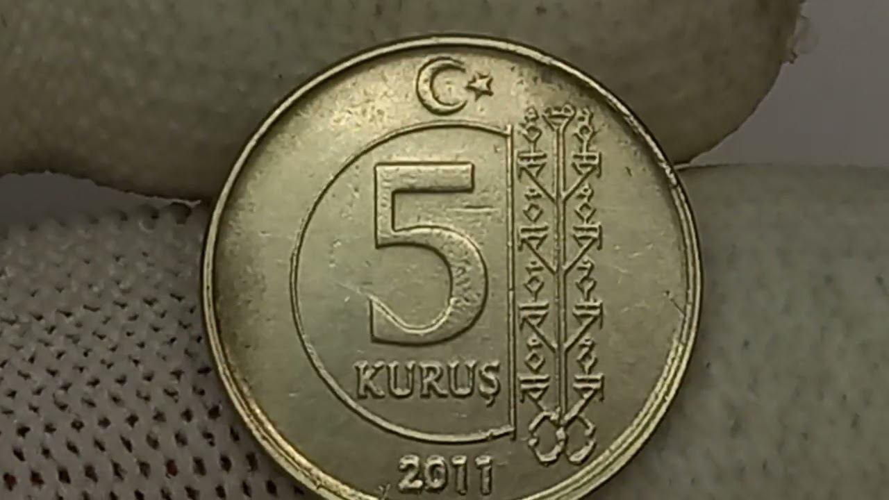 Стоимость монеты 5 курушей 2011 года. Монетный двор Стамбул. Турция.