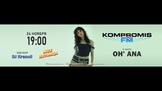 Глубина мысли, визуал и стильное звучание! В своём творчестве она честно говорит о том, как важно смело мечтать без сожалений о прошлом. Показывает, что человек прекрасен абсолютно всегда: даже в момент грусти и печали, тоски и разочарований. Встречайте — Oh’ Ana! Oh’ Ana раскрывает тонкий мир человеческих эмоций, видя их красоту в любых проявлениях. Её треки о самом важном пути в жизни каждого человека – пути к себе. Также одним из ключевых посылов в музыке Oh’Ana является то, что каждый человек гораздо глубже и шире, чем может себе вообразить. Причём она не говорит об этом высокопарными фразами, а аккуратно задаёт вопросы, такие как: «Хватит ли тесных окраин? Тёплого места на мягком кресле?» – предлагая слушателю порефлексировать, чтобы найти самые честные ответы внутри себя. На сегодняшний день Oh’ Ana выпустила 3 авторских трека, на каждый из которых был снят клип, где артистка выступила автором идей по их визуальному воплощению. Сингл «Lovesongs» попал на обложку плейлиста «Новые имена» в VK Музыка и набрал более 200 тысяч прослушиваний. А также Oh’ Ana стала финалисткой конкурса Soul Kitchen — «Ты больше чем можешь 2», который дал ей возможность выступить на одной сцене с Andro, Gayana , Андрей Гризли и др. Слушайте KOMPROMIS FM на сайте: https://kompromispro.ru/ MuzПятница - глоток свежей музыки! Интервью, беседы и музыка по пятницам на радио KOMPROMIS FM! Ведущий Анатолий Коняхин (DJ Kranoll) Слушай подкаст MuzПятница: https://podcast.ru/1695877693 ----------------------------------------------------------- Oh' Ana в соцсетях: VK: https://vk.com/ohanamusic ----------------------------------------------------------- KOMPROMIS FM в соцсетях: VK: https://vk.com/kompromisfm OK: https://ok.ru/kompromisfm TG: https://t.me/kompromisfm YouTube: https://www.youtube.com/@kompromisfm ----------------------------------------------------------- KOMPROMIS PRODUCTION в соцсетях: YouTube: https://www.youtube.com/@kompromispro ВК: https://vk.com/kompromispro OK: https://ok.ru/kompromispro TG: https://t.me/kompromispro