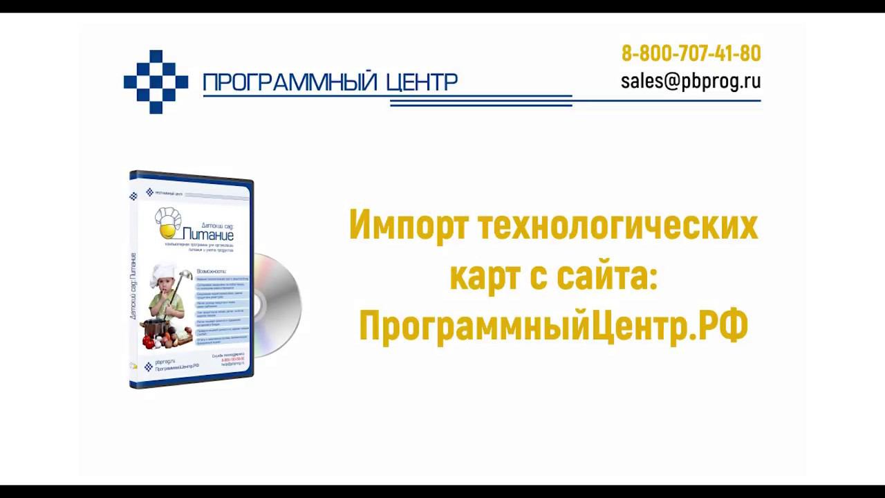 Видеоинструкция по импорту технологических карт в программу в программы серии "Питание" с сайта ПрограммныйЦентр.РФ (pbprog.ru) на примере программы "Детский сад: Питание".