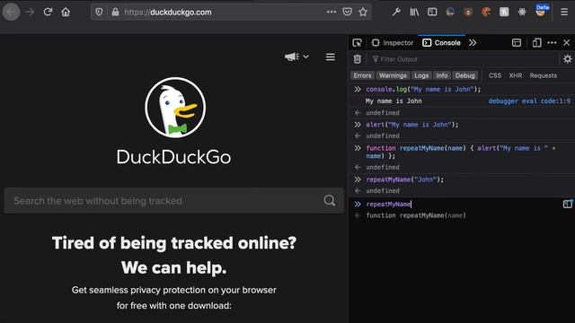 Learn how to write some javascript code right now using only your browser. Try out these five simple commands to start seeing the power of the javascript language and the cool things you can build when you learn how to program. We will use console.log, javascript alert, create a couple javascript functions and show your cookies using javascript. Anybody can program, but the tricky part is knowing where to start. You do not have to install anything but a browser in order to start writing your first lines of code! 1. Output to the console using console.log 0:37 2. Create an alert on the screen 1:12 3. Create a "function" to repeat your name 1:30 4. View your cookies using document.cookie 3:16 5. Use "onkeydown" to track what keys you are pressing 4:00 Other content ------------- If you would like to see more programming videos, I created an entire course for beginners and it's free on YouTube: https://www.youtube.com/playlist?list=PL9DoyKp4oUMEP19m1l5XGqBB9odShVT34 If you would like to support this channel you can always like, comment, share, and (best of all) subscribe!: http://bit.ly/30zUtFj