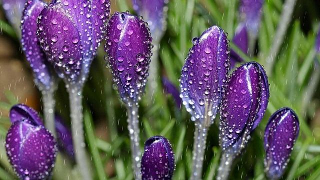 Футаж. Цветы под дождём 20