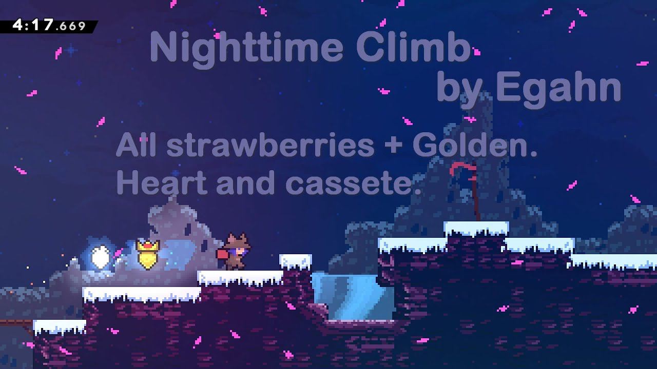 Celeste: Nighttime climb by Egahn All strawberries + Golden,heart and cassete