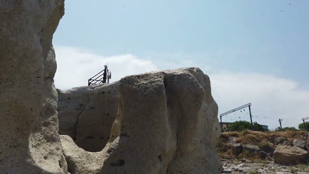 Берег Каспийского моря, изрезанные водой камни