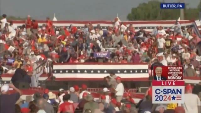 Момент стрельбы во время выступления Трампа в Пенсильвании