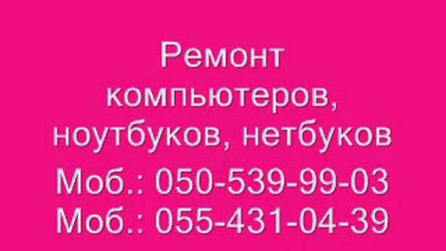 Ремонт компьютеров, ноутбуков, нетбуков; Замена вышедших из строя комплектующих (экран, клавиатура, жесткий диск, аккумулятор, адаптер и т.д.) форматирование, установка Windows, любых программ и антивирусов; восстановление данных, подключениe к Интернету; Создание локальной сети в офисе или дома. Сервис с выездом на дом или в офис. Моб.: 050-539-99-03 Моб.: 055-431-04-39