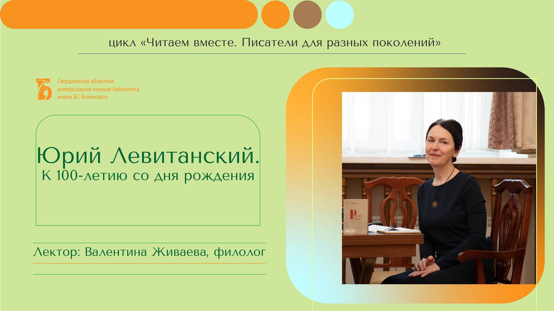 Лекция филолога Валентины Живаевой. Он не писал для детей, но в его творчестве множество стихотворений, которые понятны детям и любимы читателями разных возрастов. На новой встрече из цикла «Читаем вместе» поговорим о жизни выдающегося поэта-фронтовика Юрия Давидовича Левитанского (1922–1996) и вспомним его стихи – песенно-нежные и полные скрытого драматизма, глубокие и забавные, увлекающие своим неповторимым ритмом и радостью вечного удивления. Камера, монтаж: Анастасия Тихонова. Свердловская областная универсальная научная библиотека им. Белинского http://book.uraic.ru/ сайт https://vk.com/club6745014 VK