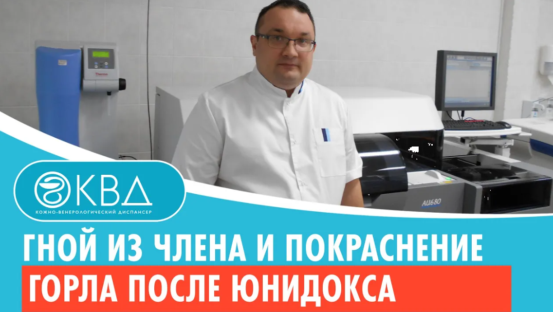 Запись на прием - https://kvd-moskva.ru/content/zapishites-na-priem-seychas-0/ При приеме с 13:00 до 15:00 (любого дня) стоимость консультации 600 рублей (вместо 900). Молодой человек, спустя примерно 5-7 дней после полового акта, почувствовал жжение, зуд в канале полового члена, заметил гной из канала. У него начались боли в горле. Не обратившись к врачу, без анализов, он начал самостоятельно принимать препарат «Юнидокс Солютаб». Так как эффект был незначительный, мужчина обратился в клинику «Платный КВД» в Москве. Было проведено комплексное обследование. Анализы из горла, из члена на половые инфекции, посев на бактерии выявили хламидиоз и гонорею. В таких случаях назначают инъекции препаратом «Цефтриаксон», ферменты по типу «Лонгидаза». На втором этапе терапии, после снятия явления острого уретрита, назначают инстилляции для полной элиминации хламидии, а также полоскание горла специфическое. Пациенту в течение 20 дней проводилась комплексная терапия, в результате которой наступило выздоровление. Контрольный анализ, выполненный через 3 недели, был отрицательный. Чаще всего самолечение без анализов ведет к простатитам и другим осложнениям. #гнойизчлена #покраснениегорла #гнойизчленапослеюнидокса Подробнее: https://kvd-moskva.ru/urologiya/41/ Цены - https://kvd-moskva.ru/tseny/ Врачи - https://kvd-moskva.ru/doctors/ Смотрите видео: Женские болезни - https://bit.ly/2WHUcgR Мужские болезни - https://bit.ly/2WGMFPt Анализы - https://bit.ly/2VEtGbB Лекарства - https://bit.ly/2VpMF4S Лечение и профилактика - https://bit.ly/2E3K7Dp Контрацепция - https://bit.ly/2LHvlZy Связаться с КВД-Москва: 8 (495) 642-30-37, 8 (495) 532-66-57 platnyi-kvd@yandex.ru http://kvd-moskva.ru