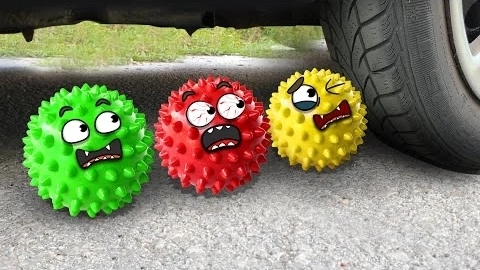 Разбиваем твёрдые и мягкие предметы машиной 🚓 Машина против разноцветных мягких мячиков для снятия