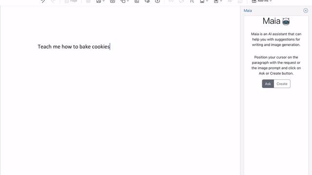 Maia (My AI Assistant) demo on Word for iPad