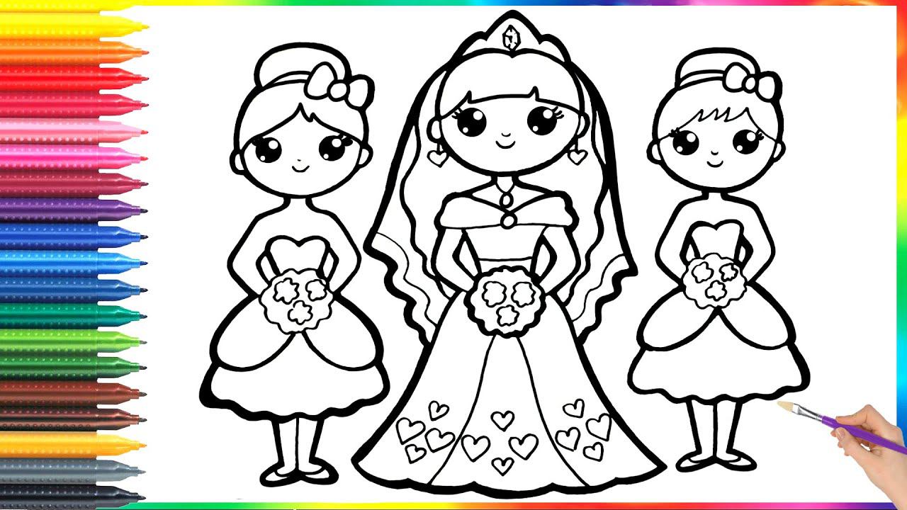 How to draw a bride and bridesmaids for children/Cómo dibujar novias y Damas de honor para niños