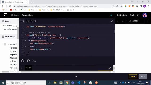 This video is an extract of a pair programming session where I go through a very well-designed express js course that improves the experience of learning express from the basics. The course is part of a paid course from the nice people at Codecademy and they are not sponsoring this video. If you would like to go through this course yourself and get a certificate of completion visit the link below. Series Playlist: https://www.youtube.com/watch?v=EAj74... Contact Me: https://twitter.com/knowledgeprog Link to Codecademy: https://www.codecademy.com 00:00 - Intro 00:23 - Express Router Info 01:01 - Example Code Walkthrough 01:59 - Creating a router code 03:33 - Using Multiple Router Files 04:00 - Example Code Walkthrough 04:37 - Expressions Routes Refactor Code 07:05 - Matching In Nested Routers Info 07:40 - Refactoring Expressions Routes 10:48 - Refactoring Animals Routes 16:01 - Routers Review 16:25 - outro