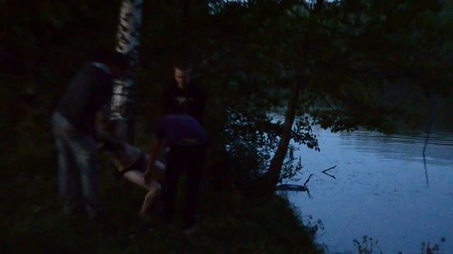 Молодую женщину бросают в воду.