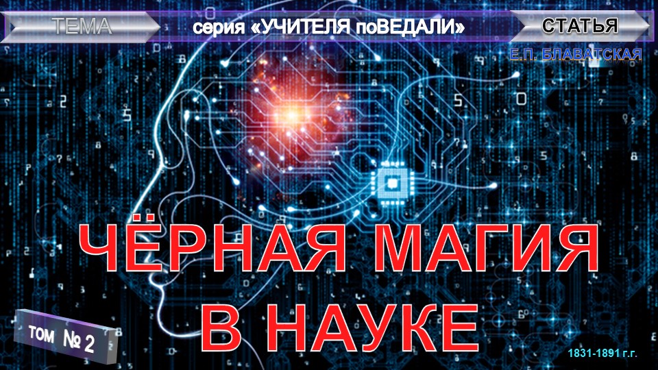 (2) ЧЕРНАЯ МАГИЯ В НАУКЕ - 2 часть статьи Е.П. Блаватской из серии Учителя ПоВедали