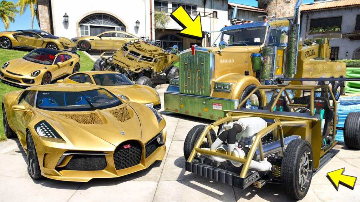 Угнал кучу золотых чит тачек и огромный монстр трак у мажора за 180 сек! Битва воров в ГТА 5 Онлайн