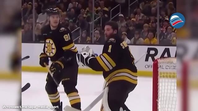 Шайба на скорости 151 км/ч снесла шлем вратарю «Бостона» во время матча НХЛ